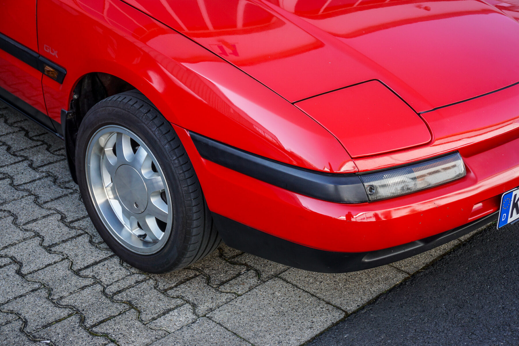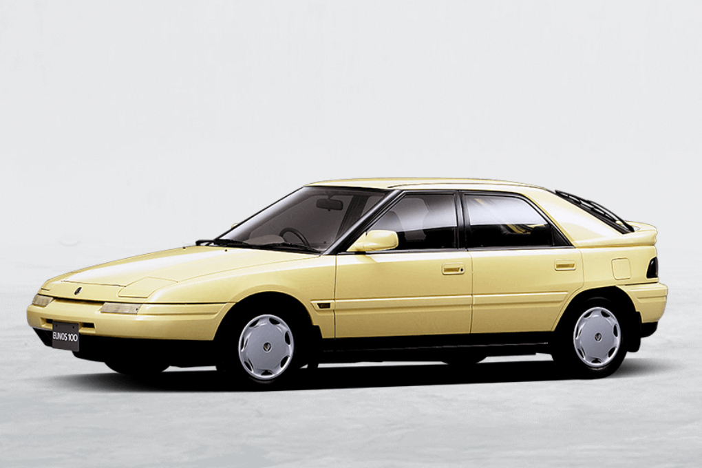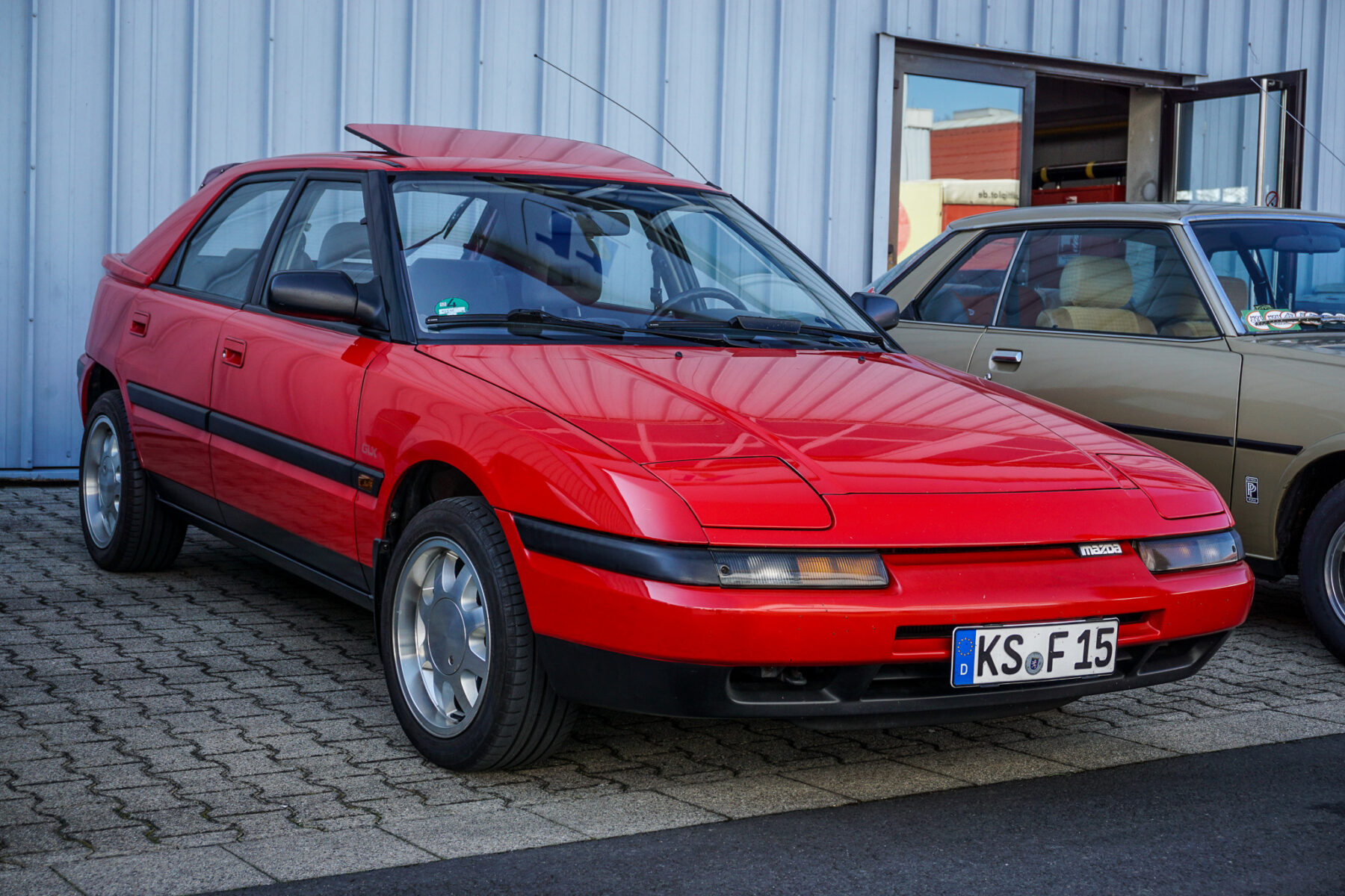 Genau in dieser Zeit explodiert Japans Wirtschaft. Die Bubble Economy gebiert eine goldene Ära der japanischen Fahrzeugindustrie: Ungehemmte Kreativität lässt wilde Konzepte in Serie gehen. Mazda leistet sich gleich zwei eigene Submarken — Autozam und Eunos. Und beim neuen Familia/323 der, mittlerweile siebenten, Baureihe BG erlaubt man sich den Astina, bei uns als 323F bekannt. Neben dem biederen Dreitürer und dem noch biedereren Viertürer bekommt der Fünftürer etwas Besonderes: eine große Heckklappe — und vorne zwei kleine Klappen. Richtig: Klappscheinwerfer in der Golf-Klasse. In Deutschland zumindest einzigartig.
