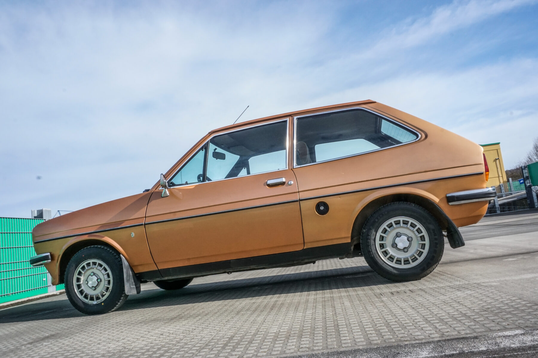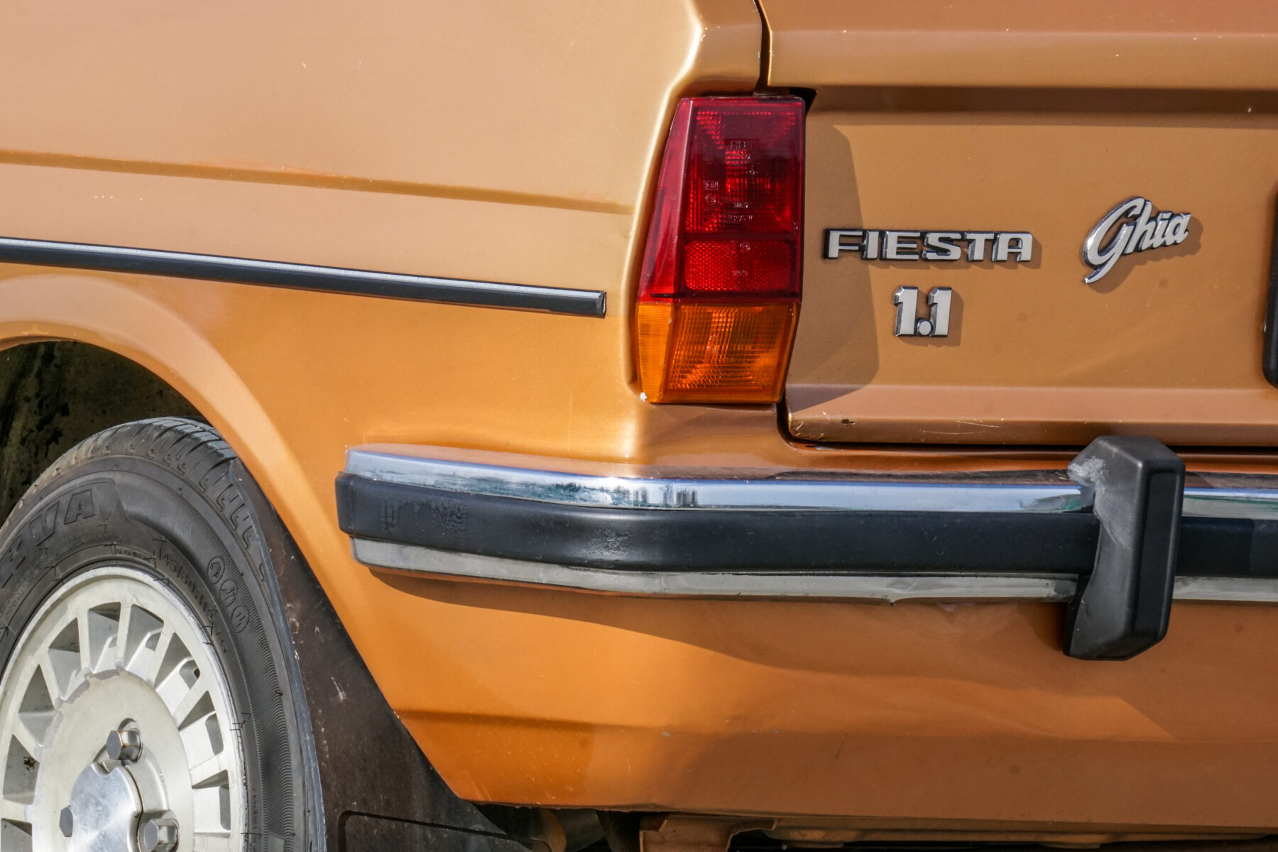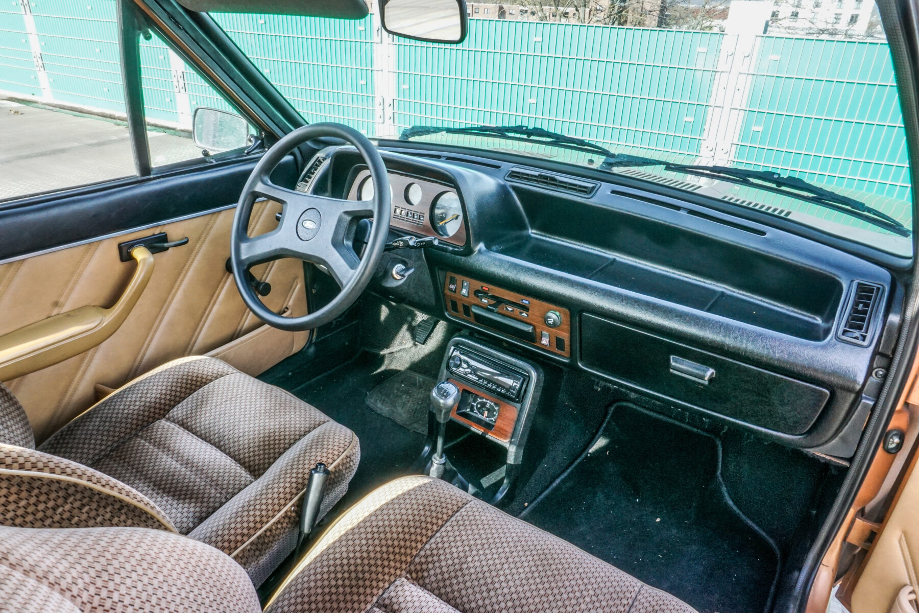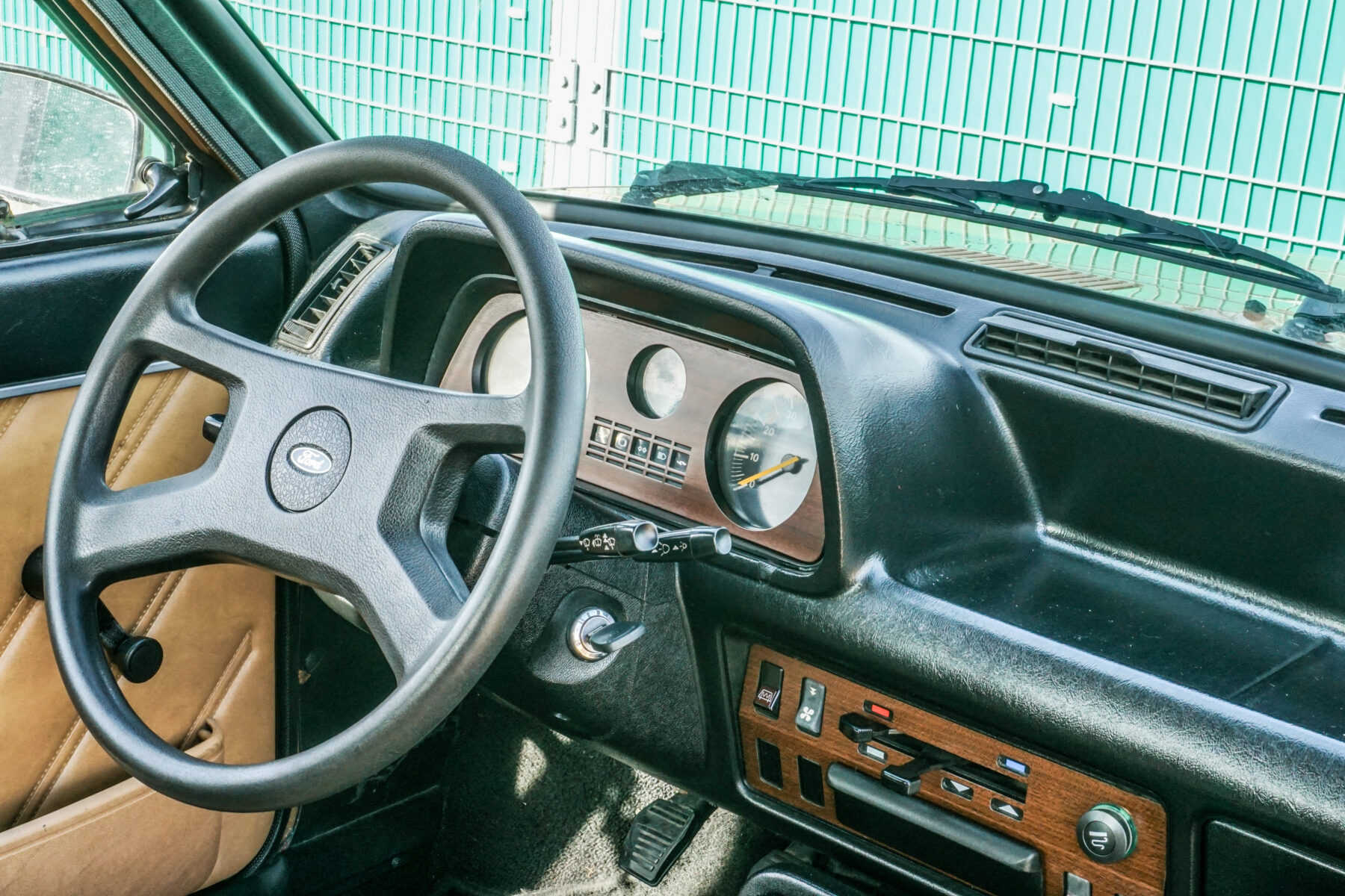 Was braucht eine Shitbox? Komfort, etwas Plüsch, die eine oder andere Annehmlichkeit, zum Beispiel eine Klimaanlage. Kurz: Es braucht einen Fiesta Ghia. Mit der Übernahme von Carrozzeria Ghia durch Ford wurde das Badge genutzt, um Ford eine hochwertige Ausstattungslinie zu bescheren — das gab es schon beim Fiesta 76. Das bedeutete mehr Plüsch, weniger nacktes Blech und Holzimitat.
